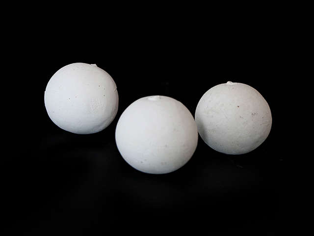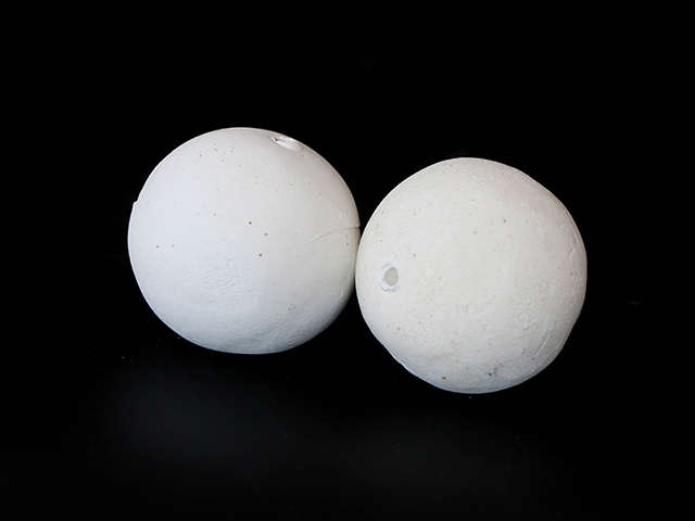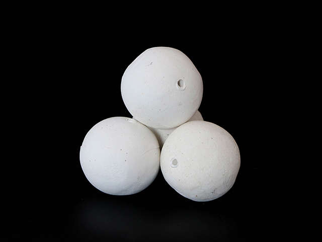 開孔瓷球以球體直徑開設(shè)單個或多個圓孔,解決了單個球體的回旋阻力問題。曲紋型開孔瓷球條紋或凸點外凸表面,提高了填料層的空隙率和比表面積,液體再分布能力強,汽液分散性能優(yōu)良,與惰性氧化鋁瓷球相同條件下的使用性能比較,空隙率增大12%,接觸比表面積增大25%,阻力減少15%。同時可以容納、截留焦粉.膠質(zhì)、重金屬雜質(zhì),避免其沉積在催化劑床層結(jié)焦、毒害催化劑。