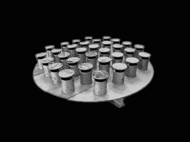 一種液體停留時間均布的塔肋.本發(fā)明在塔盤上弓形降液管液體出口處設(shè)置一塊中間向兩邊傾斜的液流均布板,控制一定的高度,長度,形狀和傾斜度,使液體在進入塔盤之前,先進行一次液體的均勻分布,同時有效地調(diào)控進入盤面各個位置的液體流量,能有效地消除盤面液體的溝流和回流,使盤面液體的停留時間差控制在8%以內(nèi).所說的塔盤可用于各種類型的板式塔,如篩板,浮閥板和泡罩板等,尤其適用于工廠短期停車對舊塔的現(xiàn)場改造,是一種具有廣闊應(yīng)用前景的板式塔塔盤.